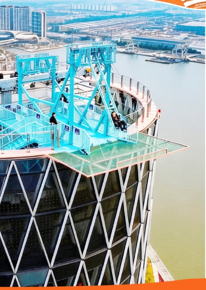 除了挑战极限,塔内其他楼层也布局了多元化的游乐体验。位于180米顶层的“凌云步道”,让游客在安全绳的保护下绕塔漫步,脚下即是万丈风景;5楼的“极速跃界”则被戏称为“窝囊版蹦极”,通过安全绳辅助实现匀速下降,既保留了高空坠落的刺激,又大幅减轻了失重的不适感;8楼的“云端织梦”则是专为身高1.6米以下儿童打造的40米高立体爬网空间,让孩子们也能在空中尽情探索嬉戏。