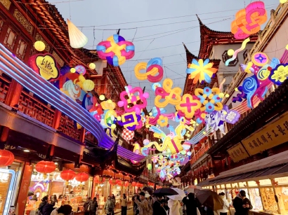 黄浦区首次将豫园灯会突破传统边界,延伸至BFC外滩金融中心等区域,形成“六区一体”新格局,并在淮海路、南京东路等区域增设迎新灯饰,悬挂中国结、红灯笼,烘托浓浓年味。