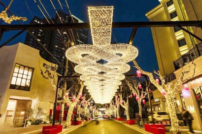 徐汇区结合国际品牌系列活动,在东湖路增设中国结设计元素的景观灯饰,并设置灯串、灯笼,呈现沉浸式的节庆氛围体验。
