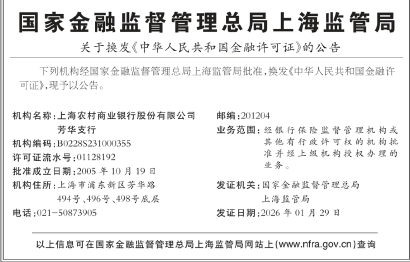 关于换发《中华人民共和国金融许可证》的公告