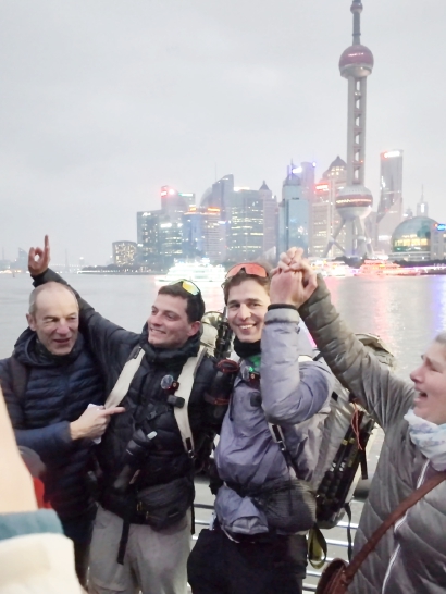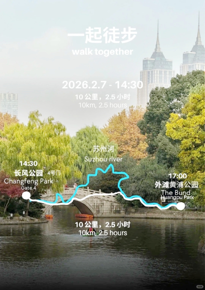 刚过去的这个周末,他们终于带着一身风尘抵达这次徒步的终点:上海。2月7日14:30,洛伊克和本杰明从长风公园4号门出发,一路沿“一江一河”前行,步行10公里,到达了外滩。出发时,大约有五六十名中国人和外国人自发参与了这场跨越国籍和文化的CityWalk。让人惊讶的是,一路上不断有人加入这支徒步的队伍,最终在外滩拍摄大合影时,已经集聚了百余名来自不同国家、不同城市、不同肤色的参与者。