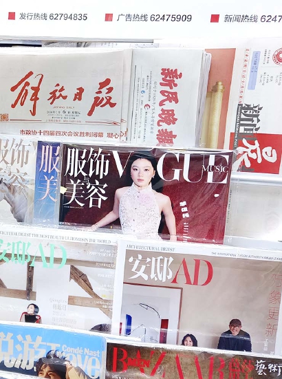在武康大楼下,是这两年重新升级改造的大隐书局·印象武康主题店,书店门口有“书报亭”的字样。记者走进去发现,“书报亭”其实是指书店内部的三个展陈杂志的区域,杂志品种琳琅满目。据大隐书局工作人员介绍,该店平均每个月销售杂志五百多册,码洋一万多,销售最好的杂志品种包括《读者》《三联生活周刊》《故事会》《新民周刊》《国家人文历史》等。