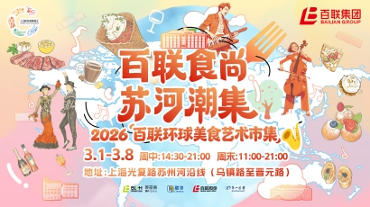 为进一步激发区域消费活力,打造苏河湾地区文商旅融合消费新场景,百联集团主办,百联资控承办的“百联环球美食艺术市集”将于2026年3月1日正式开幕,此次活动将以“百联食尚,苏河潮集”为主题,在光复路苏州河沿线为市民朋友们带来为期八天的舌尖美味与艺术美学的多重盛宴。