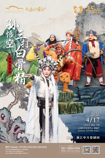 文武兼备,刚柔相济,4月17日至18日,浙江中月婺剧团将携两部口碑力作献演,将婺剧与未来视界深度融合,带来兼具传统神韵与先锋气质的视听盛宴。新概念婺剧《孙悟空三打白骨精》融合无人机、机器狗、裸眼3D等前沿舞台科技,在保留婺剧传统“唱念做打”核心基础上,构建一个穿越古今、沉浸奇幻的西游世界。由一级演员汤盛存饰演白骨精,“变脸+变装”绝活实现角色快速切换,极大地增强了戏剧张力。在保留传统戏曲筋骨和灵魂的同时,让这一古老的非遗“潮”起来,打破年龄与圈层的界限。