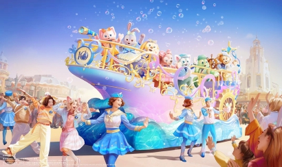 在“米奇童话专列”驶来之前,全新萌趣洋溢的“‘友谊号’:达菲和朋友们的特别巡游”将率先登场。花车以璀璨的金色帆船为造型,车身绘有灵动的海浪纹样与望远镜等精巧细节,在温暖、欢乐与友谊的美好氛围中,为整场巡游拉开奇妙序幕。七位达菲和朋友们都将身着缤纷绚丽的庆典新装亮相。