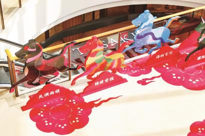 浦东前滩太古里Tiffany飞马雕塑振翅向上,传递蓬勃向上的美好寓意。黄浦推出“寻马记”主题打卡活动,在豫园、新天地、外滩等重点区域布置10余处融合地标与“马”元素的艺术装置。静安张园打造海派新春年味,“搭在一块,乐造新年”乐高积木新春巡礼、“闪亮·静安 光影SHOW新春”等活动轮番登场,日均客流12.5万人次。徐汇西岸梦中心开展奇幻水岸嘉年华,设置全市最大露天冰场,丰富亲子与家庭客群的消费场景。长宁百联西郊携手青年艺术家打造“巨型瑞兽+全民手绘共创”马年打卡地标,将艺术创作与商业空间结合。普陀上海环球港打造融合全球风味的四维美食体验,还引入央视春晚同款人形机器人开展擂台表演与沉浸式嘉年华。虹口瑞虹新天地携手艺术家打造“新有奇骥”新春美陈,融合翼马、纸鸢等元素。杨浦大学路以“新有奇骥”打造新春美陈并联动“水龙吟”IP构建沉浸式古风街市,开展Coser巡游、纳福通宝等互动。宝山日月光中心“Horse来玩”大型气模美陈、宝杨宝龙广场“华灯启岁”灯笼场景等互动装置等,成为市民游客争相拍照打卡的热门点位。闵行莘庄灯会联动天荟广场、仲盛世界商城两大商场,打造鱼灯巡游美陈。嘉定西云楼“马上有好市”新春市集汇聚创意设计、美学好物与地道风物。金山枫泾古镇推出“古镇过大年”活动,打造涵盖金山特色年味的多元沉浸式体验消费场景。松江泗泾古镇推出“光绘泗泾”灯光秀和“瑞兽迎新”灯彩展,春节期间客流及营业额均较去年同期翻番。青浦蟠龙新天地带来“新有奇骥·江南年”活动,15+江南灯会点位融入蟠龙水系、古桥与街巷等特色场景。奉贤青溪老街风雨长廊长桌宴于大年初三登场,百米长龙座无虚席,老八样、八宝饭、手工汤圆等传统年菜吸引市区市民驱车前来寻味。崇明万达广场以“购在崇明 年在万达”为主题,举办“沪上闹春集”年货大集、新春音乐会、祥狮纳福秀、萌趣嘉年华等活动。