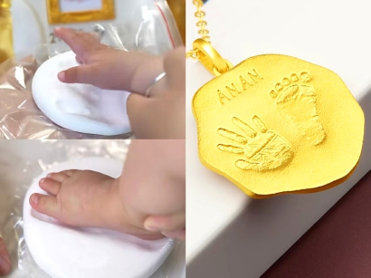 还有新生儿的小脚印、小手印,以往是在白泥里按下印记,风干后上色做成纪念品,如今这已不够过瘾——有父母直接将这些图案做成足金纪念品。