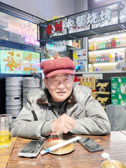 老刘现在每次来店里只让店员泡一壶茶,一个人坐着慢慢喝。他说,自己做了半辈子烧烤,不想再吃了。这个周五的晚上,他看到店里桌桌坐满了人,笑意就漫上了眼角。
