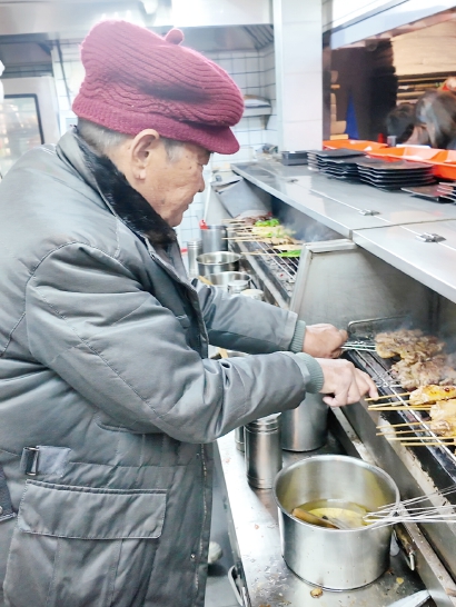 刚开店的时候,他亲自在后厨负责烧烤。后来想想年纪太大了,还是让年轻人来接班,他负责培训。