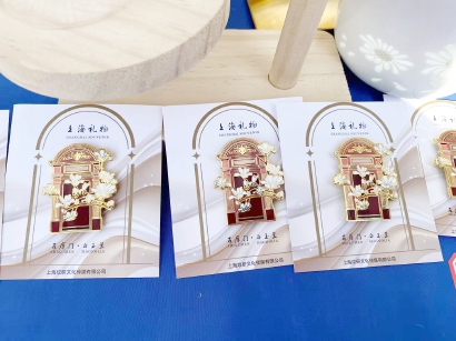 2010年上海世博会也有不少含白玉兰元素的礼品。现场,一款徽章拼接成的白玉兰图案勾起不少市民的回忆。此外,还有白玉兰与石库门同框的“上海礼物”,包装含白玉兰元素的茶叶、酒等,琳琅满目,每一款都很精美。