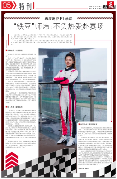 2025年,她成为中国首位F1学院外卡车手。也是这次机会,让她实实在在体会到了与顶尖职业女车手的差距——这些在完善的青训体系下成长起来的女车手,往往能够快速适应赛道的变化和挑战,在时速高达200公里的情况下依然能保持精准的控制。