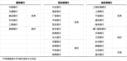 城农商银行中,上海农商银行、上海银行以及宁波银行上海分行等5家银行表现优秀,其余银行表现良好或以下。