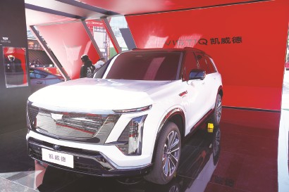 展台C位当属全新全尺寸纯电公路旗舰SUV 凯威德,是凯迪拉克电动化转型的核心力作,也是本次展台的一大看点之一。作为凯迪拉克首款搭载M om enta辅助驾驶系统的车型,凯威德创新采用舱内隐藏式激光雷达设计,舍弃传统车顶凸起式布局,既保证了车身线条的完整流畅,又能有效降低恶劣天气对感知设备的影响,实现“颜值与性能双提升”,这一设计也成为现场观众关注的焦点。