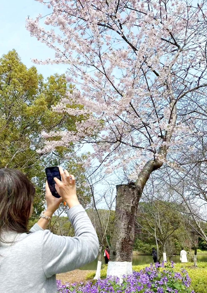 音乐,是连接游客与春日浪漫的桥梁。昨天下午,“樱乐之声Live演唱会”在公园内精彩上演。歌手罗小罗现场演绎流行、民谣等多元风格的音乐,每一个音符都如同精灵,在空气中跳跃,与樱花共舞。