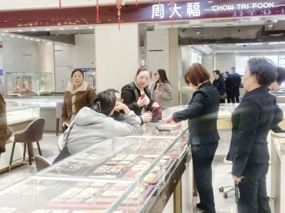 昨天,记者走访上海多家周大福门店了解到,截至3月23日,一口价金饰仍未调价。紫锦城一楼的周大福柜台柜姐表示,3月23日的确是原定的涨价日期,但昨天并未涨价,后续何时涨价、涨不涨价暂未可知。