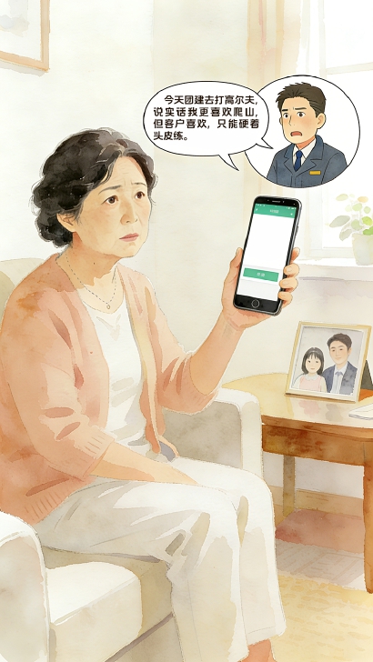 接下来的几天,“大刚”按照话术本的节奏推进,“今天团建去打高尔夫,说实话我更喜欢爬山,但客户喜欢,只能硬着头皮练。”这种“凡尔赛式”的抱怨,看似随意,又展现了经济实力与社会地位。