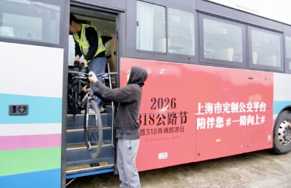活动当天,这趟定制公交从18号望江驿钟天使驿站启程抵达青浦,一路从国家会展中心出发,途经崧泽遗址博物馆,最终抵达崧泽映巷318Park,为当天的G318骑行活动提供保障。
