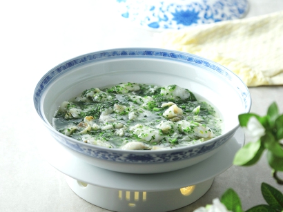 绿波廊版本的“香糟荠菜烩黄鱼”,手工剔骨后的黄鱼肉与鲜荠菜一同精心烩制,再加入特制糟汁,使黄鱼的鲜美在糟香的激发下更显醇厚,舀上一勺入口,鲜香又滑嫩。