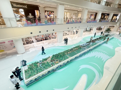 正在打卡的市民刘女士忍不住感叹:“真的太震撼了!全是乐高积木拼出来的,这么长的一幅作品,想想都觉得不容易。南京西路本来就是闹市区,周围全是商店,突然出现这么一个有文化底蕴的装置,有山有水有草木,就像在商场里藏了一个小春天,扑面而来的绿意和生机,太治愈了!”