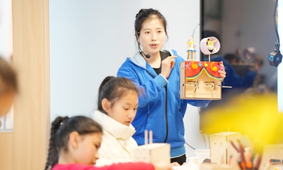 此外,全新打造的教育空间“明日科创营”也于3月31日正式开营,制作“机巧盒”、研究小孔成像、破解阿基米德的经典“真假皇冠”谜案……这里构建了一套科创教育课程体系,试运营期间课程暂不收费。