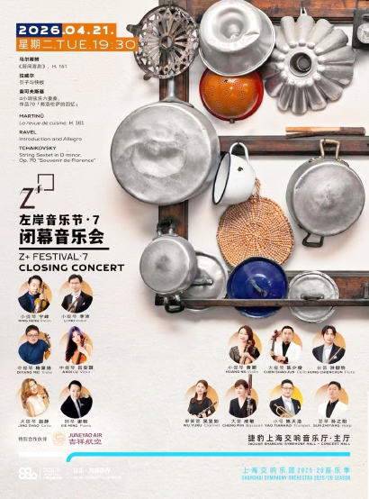 闭幕音乐会由小提琴家宁峰和柏林爱乐中提琴首席梅第扬领衔,以三部风格迥异却又彼此呼应的作品——马尔蒂努《厨间喜剧》、拉威尔《引子与快板》、柴可夫斯基《d小调弦乐六重奏”佛罗伦萨的回忆”》,谱写浓墨重彩的终章。