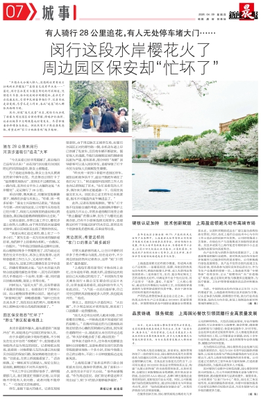 闵行这段水岸樱花火了 周边园区保安却“忙坏了”