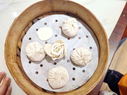 游阿姨给我讲起了故事。她说,清朝时,她的祖上挑着担子在古镇叫卖,为了让包子更鲜更好吃,发明了“皮薄、馅大、汁多”的小笼馒头。梅叔叔的演示让我看呆了:软软的面团在他手里像被施了魔法,擀、填、捏、转……一眨眼,一个小笼包就立在掌心,顶端均匀地绽开十八个细细的褶子,像朵含苞的花。