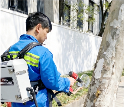 除了物理冲刷法、冬季修剪之外,绿化部门还探索了多种果毛防控措施。